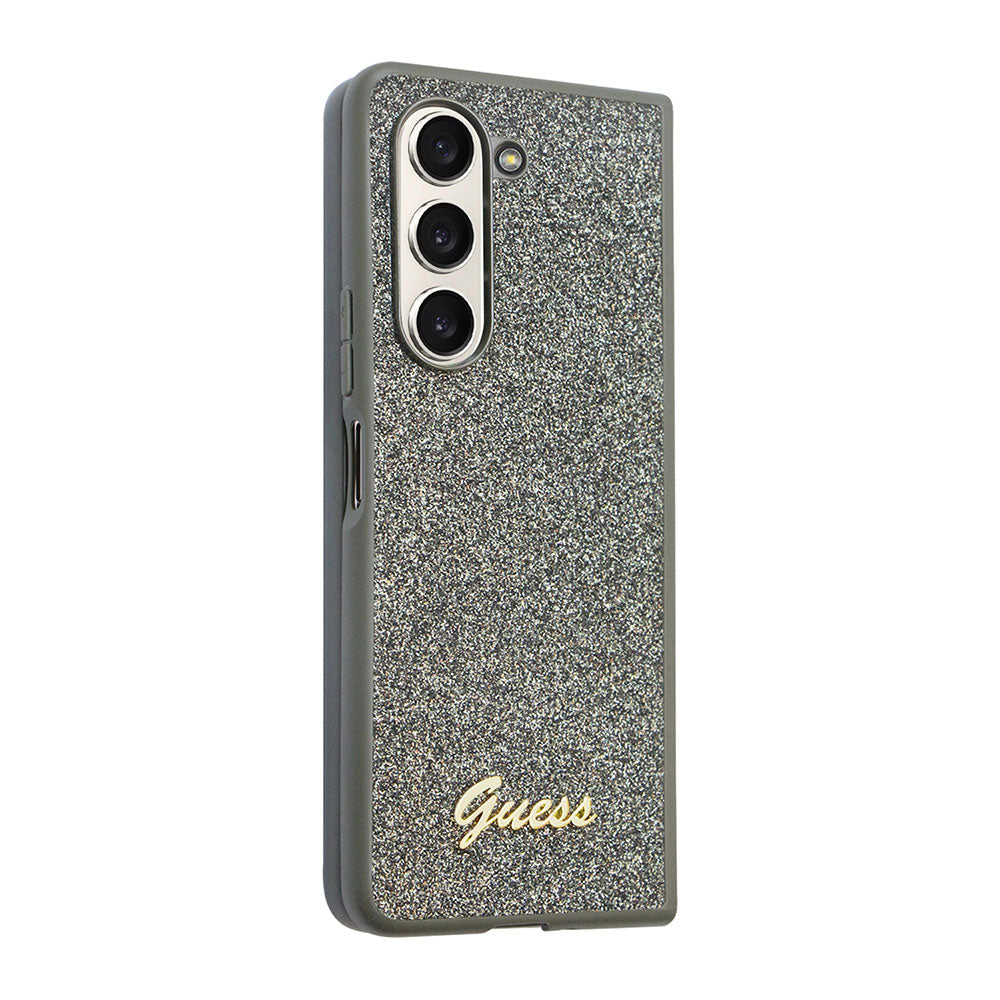 Galaxy Z Fold 5 Kılıf Guess Yazı Logolu Glitter Flakes Kapak Haki